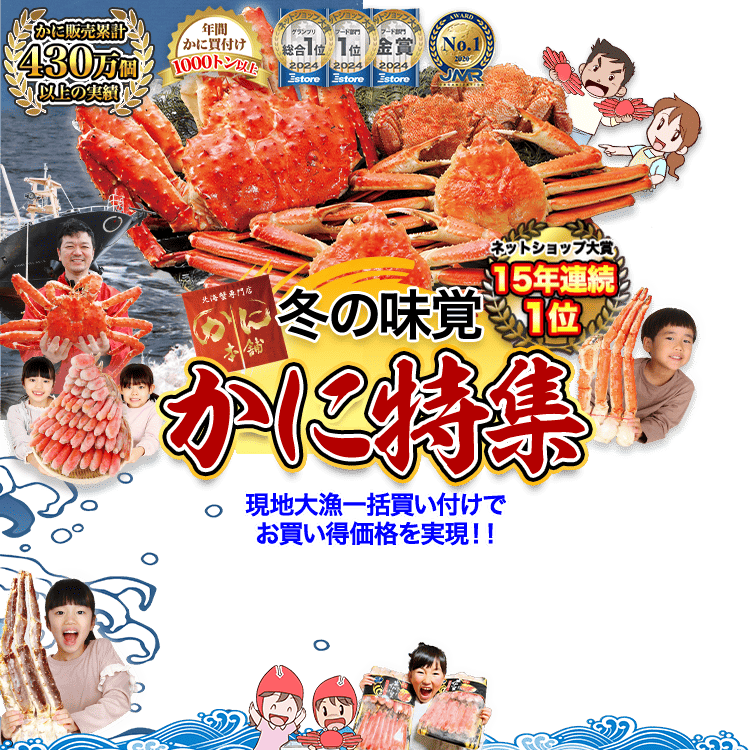 74の漁協ネットワークを持ち、獲れたてのカニを鮮度そのまま・産地直送で届けてくれる信頼の通販ショップ。