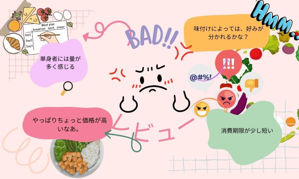 自分の好みに合わせた細かい味付けや量の調整がしづらいのがデメリットに感じる。